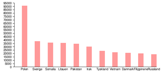 Antall personer i de største innvandrergruppene i Norge pr. 1. januar 2014. Kilde SSB